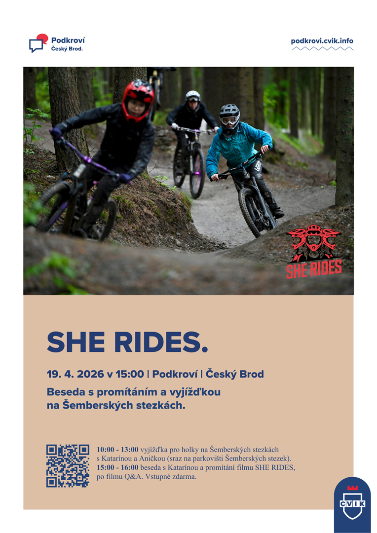 Zveme vás besedu s Katarínou Tóthovou, která uvede svůj krátký film SHE RIDES o komunitě bikerek v ČR. Promítání v Podkroví bude předcházet speciální vyjížďka po Šemberských stezkách.