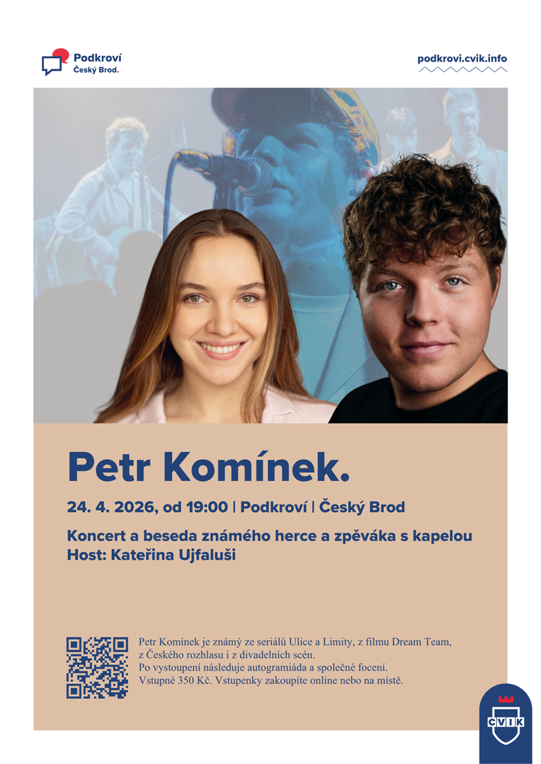Herec a zpěvák Petr Komínek, známý ze seriálů Ulice a Limity, z filmu Dream Team, z Českého rozhlasu i z divadelních scén, přijíždí se svou kapelou s hudebním programem doplněným o besedu s publikem.